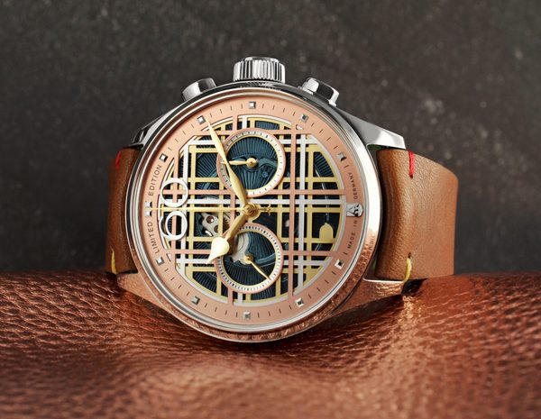 Číslo „3“ v názvu hodinek symbolizuje tři různé vrstvy kovu použité k výrobě číselníku, které mu dodávají skeletový vzhled: stříbrná barva, žluté pozlacení, růžové pozlacení. Všechny tři „kostkované mřížky“ jsou vzájemně propojeny a vytvářejí harmonický, průsvitný kostkovaný vzor v zajímavém 3D vzhledu. Modré ručičky…