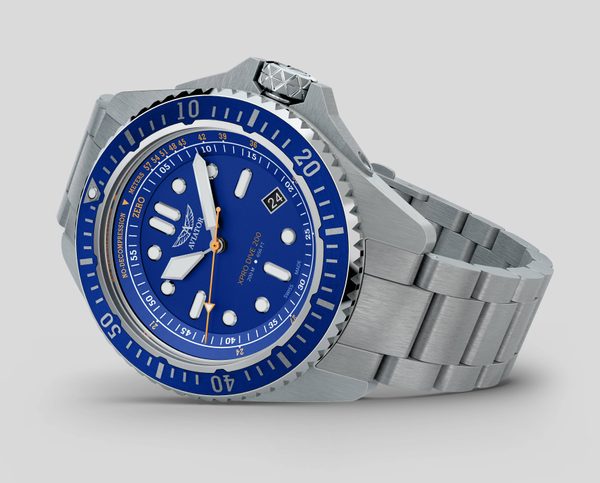 AVIATOR XPRO DIVE 200 jsou hodinky s dvojitým prostředím, které jsou navrženy tak, aby vynikaly ve dvou světech. Jejich dvojitá bezdekompresní stupnice, adaptovaná z potápěčské příručky Navy SEALs, vás udrží v bezpečných časových limitech, ať už se potápíte na hladině moře nebo prozkoumáváte vody ve vysokých nadmořských výškách.