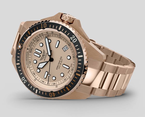 AVIATOR XPRO DIVE 200 jsou hodinky s dvojitým prostředím, které jsou navrženy tak, aby vynikaly ve dvou světech. Jejich dvojitá bezdekompresní stupnice, adaptovaná z potápěčské příručky Navy SEALs, vás udrží v bezpečných časových limitech, ať už se potápíte na hladině moře nebo prozkoumáváte vody ve vysokých nadmořských výškách.