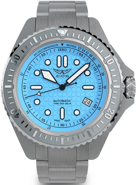 Hodinky AVIATOR XPRO DIVE 300 auto byly navrženy pro ty, kteří se orientují v oblacích i vhlubinách vod, a nově definují profesionální měření času. Tyto hodinky, navrženy propotápěče i piloty, kombinují leteckou přesnost s odolností v hluboké vodě. Díky vodotěsnostido 300 metrů, kvalitnímu švýcarskému strojku s automatickým nátahem a dobře čitelnémuciferníku hodinky zajišťují špičkový výkon, ať už se vznášíte nad oblaky nebo zkoumáte hlubinyvod.