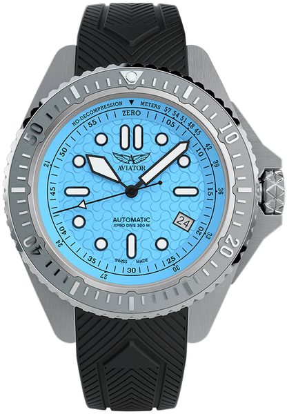 Hodinky AVIATOR XPRO DIVE 300 AUTO byly navrženy pro ty, kteří se orientují v oblacích i vhlubinách vod, a nově definují profesionální měření času. Tyto hodinky, navrženy propotápěče i piloty, kombinují leteckou přesnost s odolností v hluboké vodě. Díky vodotěsnostido 300 metrů, kvalitnímu švýcarskému strojku s automatickým nátahem a dobře čitelnémuciferníku hodinky zajišťují špičkový výkon, ať už se vznášíte nad oblaky nebo zkoumáte hlubinyvod.