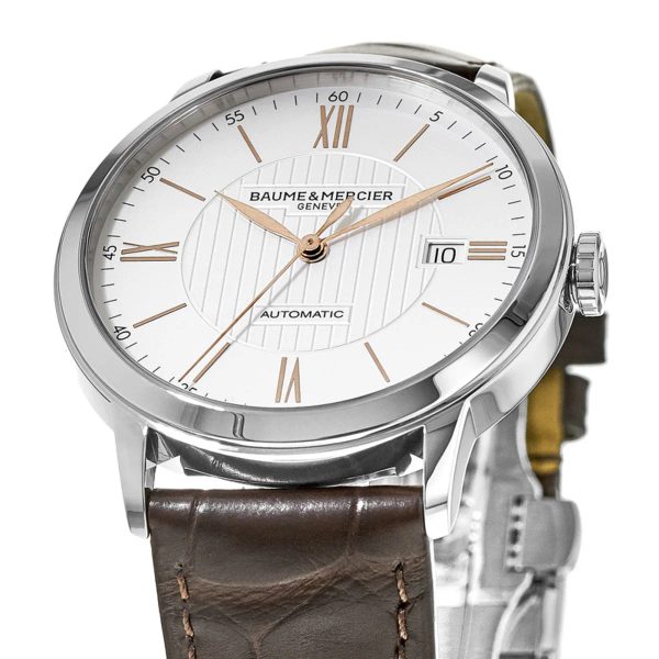 Model Baume & Mercier Classima M0A10263 má jednoduchý stříbřitý číselník se strukturovaným středem a stříbrnými plastickými indexy střídajícími se na hodinových pozicích s římskými číslicemi. Celek vhodně doplňují na světlém podkladu vynikající…