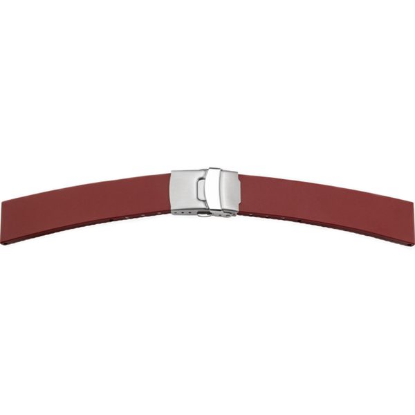 Řemínek BEAR červené barvy s šířkou 20 mm a se stříbrnou překlápěcí sponou s pojistkou. Řemínek má výraznou vanilkovou vůní, která se nachází pouze v pravém přírodním kaučuku.