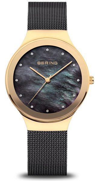 Dámské hodinky Bering Classic 12934-132 jsou elegantní, čisté hodinky, které zaujmou 12 třpytivými krystali, které jsou umístěné na pozici indexů. Hodinky drží na ruce díky pletenému náramku z ušlechtilé oceli s PVD povrchovou úpravou černé barvy. Model se dá využít hlavně jako doplněk do společnosti, ale samozřejmě i na běžné nošení.