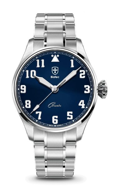 Modely Biatec Corsair CS N pohání švýcarský automatický strojek Sellita SW200-1 TOP, který je zdobený modrými šrouby, jemnou perletí a v neposlední řadě výjimečným rotorem od firmy Biatec ve tvaru vrtule inspirované legendární stíhačkou F4U Corsair. Strojek s 26 kameny pracuje na frekvenci 28 800 polokmitů za hodinu …