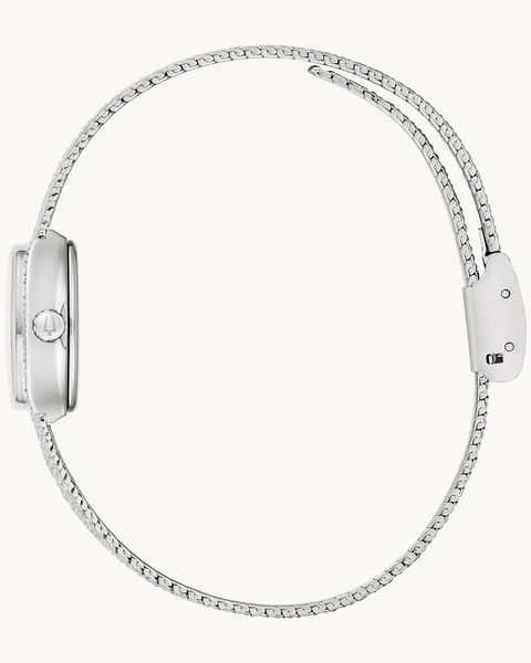 Hodinky na první pohled upoutají svým drobným zdobným pouzdrem ve tvaru tonneau, které plynule přechází do stejně ztvárněného náramku. Pouzdro i náramek jsou vyrobené z nerezové oceli. Pouzdro i pletený kovový náramek zdobí jemná…