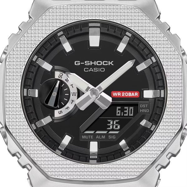 Casio G-Shock GM-2100M-1AER rozšiřují oblíbenou řadu modelů, přezdívaných „CasiOak“, proslulou svým osmibokým pouzdrem a přináší moderní industriální vzhled v monochromatickém provedení. Model sází na čistotu designu a konstrukci zaměřenou na maximální odolnost.Pouzdro kombinuje pryskyřicové jádro s kovovým vnějším obalem, jehož výrazná texturovaná úprava podtrhuje technický charakter hodinek. Průzory v kovovém obalu umožňují částečně nahlédnout na nárazuvzdornou konstrukci, klíčovou technologii G-Shocků.…