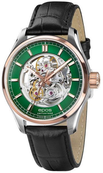 Model Epos Passion SK 3501.135.34.13.25 je poháněn švýcarským automatickým strojem Sellita SW200 s možností ručního nátahu a rezervou chodu až 38 hodin. Jeho činnost lze díky skeletonizaci strojku a průhlednému dýnku pozorovat z obou stran hodinek. Hodinky jsou vyrobeny v kombinaci ocelového pouzdra a koženého řemínku.…