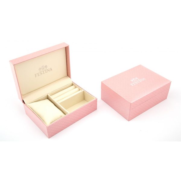 Hodinky Festina 20600/1 z řady Mademoiselle budou díky atraktivnímu vzhledu plnit nejen funkci spolehlivého ukazatele času, ale i nádherného módního doplňku. Kolekce Mademoiselle je naprosto úchvatná kolekce dámských hodinek Festina, plná jemných ženských tvarů, smyslných zajímavých detailů, příjemných módních barev a výrazné ženskosti. Najdeme zde jak jednoduché a čisté modely, tak i zdobené číselníky. Tato kolekce je oficiálním partnerem Miss France.