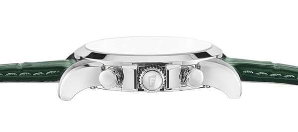 V ocelovém pouzdře o průměru 39,3 mm je usazený zelený číselník, který slouží jako podklad pro výrazné ručky opatřené luminiscencí a elegantní číslice. Na číselníku chráněném safírovým sklíčkem se kromě…