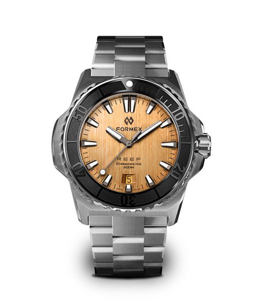Švýcarské potápěčské hodinky Formex Reef 39,5 Automatic Chronometer Bronze Dial 2201.1.6382.100 na první pohled zaujmou výrazným bronzovým číselníkem a jasně rozpoznatelným pouzdrem. Jsou moderní podobou potápěčských hodinek vhodných pro jakoukoliv příležitost, které se vyznačují jednoduchými liniemi, vysokou odolností a skvělou přehledností.