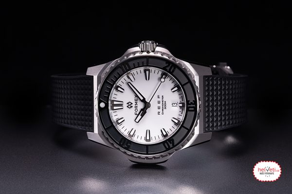 Švýcarské potápěčské hodinky Formex Reef 42 Automatic Chronometer 2200.1.6312.910  na první pohled zaujmou výrazným jasně rozpoznatelným pouzdrem a skvěle čitelným číselníkem. Jsou moderní podobou potápěčských hodinek vhodných pro jakoukoliv příležitost, které se vyznačují jednoduchými liniemi, vysokou odolností a skvělou přehledností.