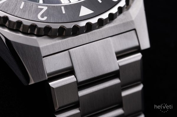 Hodinky nesou stopy po předvádění – škrábanec na prvním dílku náramku na straně pod. 6. hodinou, viz druhá fotografie.Švýcarské potápěčské hodinky Formex Reef GMT Automatic Chronometer 2202.1.5323.100 na první pohled zaujmou výrazným jasně rozpoznatelným pouzdrem a skvěle čitelným číselníkem. Jsou moderní podobou potápěčských hodinek vhodných pro jakoukoliv příležitost, které se vyznačují jednoduchými liniemi, vysokou odolností a skvělou přehledností.