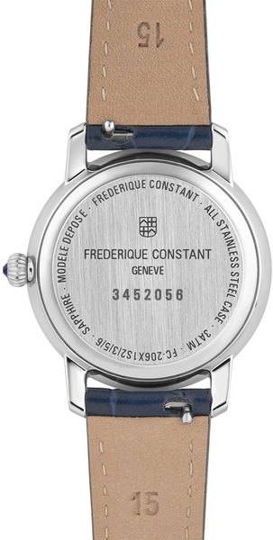 Dámské hodinky Frederique Constant Slimline Ladies Moonphase Quartz FC-206SW1S6 spadají do řady Slimline a díky svému elegantnímu vzhledu jsou vhodné jako doplněk do společnosti. Výborně však poslouží i pro každodenní nošení. Řada Slimline je mimořádně pohodlná díky velmi nízké výšce pouzder.