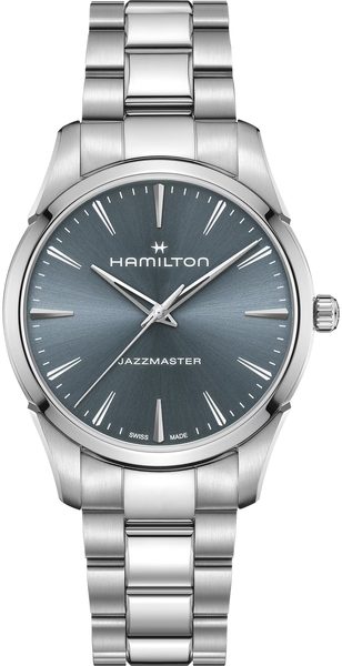 Výrazný a zároveň vytříbený model Jazzmaster Quartz 40 mm zaujme ciferníkem v hlubokém odstínu dusty blue, který působí nenápadně, přesto sebevědomě. Ultratenké pouzdro v kombinaci broušených a leštěných ploch podtrhuje čisté linie, zatímco skeletonizované ručky dotvářejí moderní vzhled. Hodinky, které s lehkostí vyvažují barvu a eleganci.