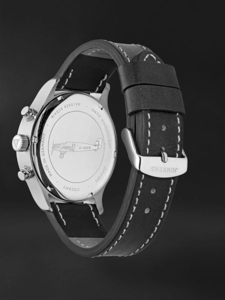 Hodinky Junkers Cockpit W33 Chronograph mají pouzdro vyrobené z ušlechtilé oceli, v němž pracuje švýcarský bateriový strojek Ronda 3540.D. Ten disponuje ukazatelem data na tradiční pozici třetí hodiny a také stopkami s přesností 1/20 sekundy (čítač na pozici 12. hodiny).…
