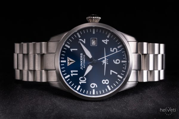 Hodinky Junkers Flieger automatik 958.01.01.M z modelové řady Flieger vycházejí z tehdejších palubních přístrojů, kdy se ještě létalo pomocí analogových displejů a pohledu ven. Tyto hodinky jsou redukovány na svou skutečnou funkci: jasné zobrazení času, jenž je viditelné na první pohled.