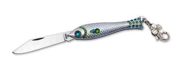 Melia je legendární kapesní nůž Rybička ručně zdobený kamínky Preciosa. Hodí se proto jako dárek k nejrůznějším příležitostem. Zatímco čepel nože je vyrobena z nerezové oceli 420 o tvrdosti 52-55 HRc, střenka je ze zinkové slitiny. Nůž je navíc opatřen dekorativní karabinkou.