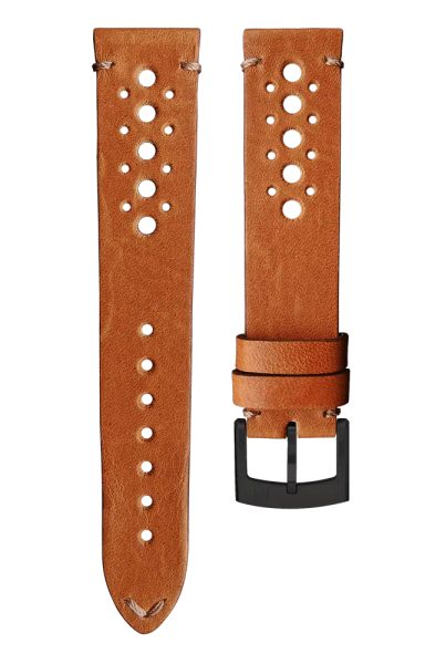 Kožený řemínek Biatec | Zlatohnědý Racing – 20 mm – Černá