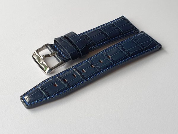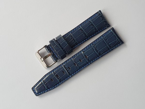 Originální kožený řemínek Vostok Europe je určený pro model GAZ 14 Limousine NH35-565A594. Řemínek je vyroben v designu vzoru krokodýlí kůže v šířce 23 mm, s lesklou sponou a modrým prošitím.