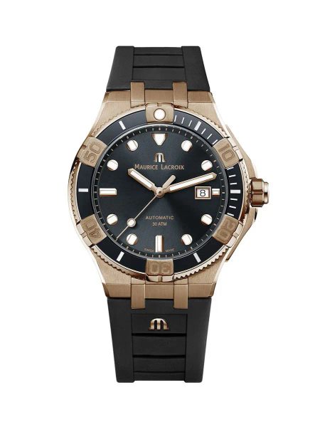 Hodinky Maurice Lacroix Aikon Venturer Bronze AI6058-BRZ0B-330-2 mají pouzdro vyrobené z bronzu, které je doplněno kaučukovým řemínkem. V jeho nitru spolehlivě pracuje švýcarský mechanický strojek s automatickým nátahem ML115. Ten vychází ze spolehlivého strojku Sellita SW200,…