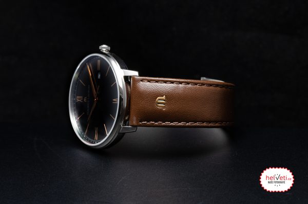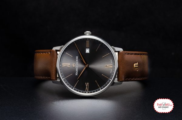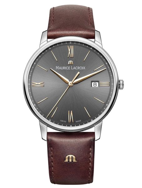 Hodinky Maurice Lacroix Eliros Date EL1118-SS001-311-1 mají pouzdro vyrobené z ušlechtilé oceli, které je doplněno hnědým řemínkem z telecí kůže. V jeho nitru spolehlivě tiká švýcarský bateriový strojek Ronda 515. Strojek disponuje ukazatelem data, který najdeme na třetí hodině.
