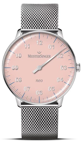 Kolekce Neo je již řadu let základem nabídky značky MeisterSinger. Její design připomíná elegantní společenské hodinky z 50. a 60. let, přičemž úzký okraj pouzdra staví ciferník do středu pozornosti. Mírně zakřivené sklo ještě více umocňuje retro kouzlo.