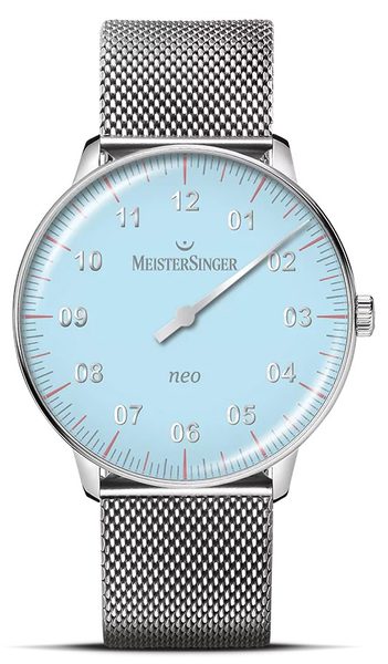Kolekce Neo je již řadu let základem nabídky značky MeisterSinger. Její design připomíná elegantní společenské hodinky z 50. a 60. let, přičemž úzký okraj pouzdra staví ciferník do středu pozornosti. Mírně zakřivené sklo ještě více umocňuje retro kouzlo.