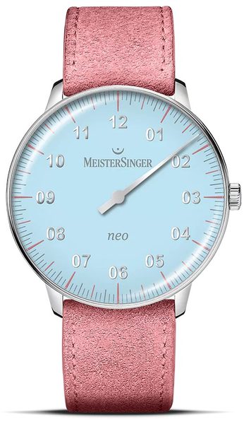Kolekce Neo je již řadu let základem nabídky značky MeisterSinger. Její design připomíná elegantní společenské hodinky z 50. a 60. let, přičemž úzký okraj pouzdra staví ciferník do středu pozornosti. Mírně zakřivené sklo ještě více umocňuje retro kouzlo.