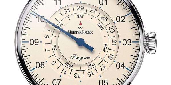 Hodinky  MeisterSinger Pangaea Day Date PDD903 spadají do řady Classic Plus a nabízí netradiční, ale o to zajímavější zobrazení času pomocí jedné jediné ručky. Hlavním znakem tohoto modelu je ukazatel dne a data, zobrazený pomocí disků ve středu číselníku. Příznivci kvalitní hodinařiny a netradičních řešení si tedy rozhodně přijdou na své.
