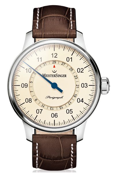 Hodinky  MeisterSinger Perigraph AM1003 spadají do řady Classic Plus a nabízí netradiční, ale o to zajímavější zobrazení času pomocí jedné jediné ručky. Hlavním znakem tohoto modelu je ukazatel data, zobrazený pomocí disku ve středu číselníku. Příznivci kvalitní hodinařiny a netradičních řešení si tedy rozhodně přijdou na své.