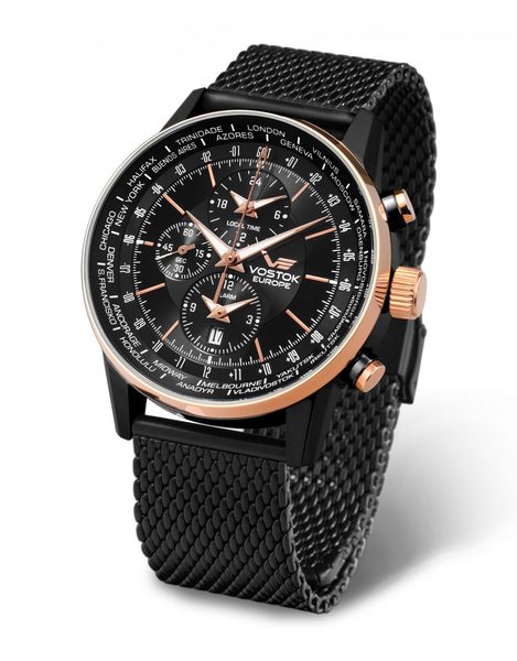 originální milánský tah pro hodinky Vostok Europe z modelové řady GAZ 14 Limousine. Řemínek je vyroben z chirurgické oceli s černou PVD úpravou v šířce 22 mm.