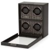 Natahovač Wolf Axis 469503 černé barvy, pro 4 kusy mechanických hodinek s automatickým nátahem. Natahovač byl navržen tak, aby se do něj vešly i větší hodinky (pouzdro až 52 mm). Nový design „uzamkne“ manžetu do bubnu rotátoru pro bezpečné uchycení. Polštářek z pěny z nízkou hustotou se snadno přizpůsobí jakémukoliv obvodu hodinek bez toho, aniž by vyvíjel nadbytečný tlak na sponu.