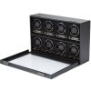 elegantní natahovač Wolf British Racing black 792502 disponuje 8 natahovacími moduly pro mechanické hodinky s automatickým nátahem. Nový design „uzamkne“ manžetu do bubnu rotátoru pro bezpečné uchycení.
