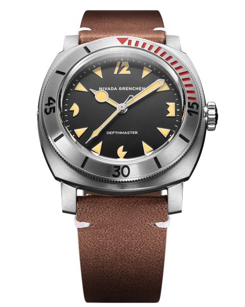 Nivada Grenchen Depthmaster Pacman 42mm – Brown Leather White Stitching