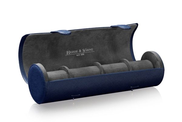 Elegantní pouzdro na hodinky Heisse & Söhne Rondo 5 70019-139 pro 5 kusů hodinek. Vyrobeno z vysoce kvalitní syntetické kůže modré barvy a šedým, velurovým interiérem.