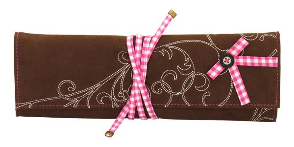 Cestovní šperkovnice Friedrich Lederwaren Bavaria 23328-9 hnědé barvy s růžovobílým interiérem, je vyrobena z veluru. Na vrchní straně pouzdra najdeme šitý vzor.