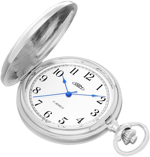 Klasické mechanické kapesní hodinky PRIM Pocket Symbol W04P.13223.A s ručním nátahem s arabskými číslicemi. Nově navržený plášť hodinek zdobí symbol českého znaku, tedy dvouocasý lev doplněný erbem, který se perfektně hodí k individualizaci monogramu. Hodinky jsou dodávány s řetízkem z ušlechtilé oceli.