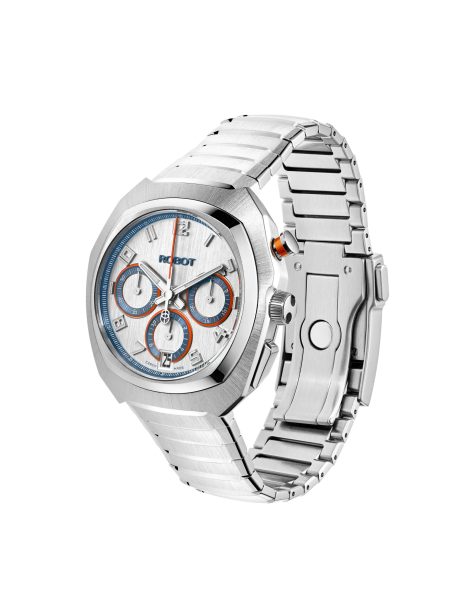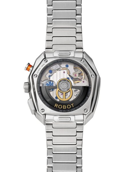 Robot Robotic One Silver v odvážném asymetrickém pouzdře z oceli 904L představuje novou tvář značky Robot – sebevědomou, originální a nezaměnitelnou. Design modelu navrhl švýcarský designér Marcus Eilinger, autor ikonických hodinek pro značky jako IWC, Tudor nebo H. Moser & Cie. Inspirací pro tvar pouzdra se stala stylizovaná hlava robota a vzdává tak holt českému původu samotného slova „robot“.