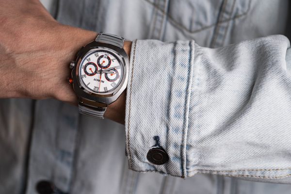 Nejvýraznějším prvkem modelu je samotné pouzdro. V něm je zasazen vertikálně broušený číselník ve stříbrném…