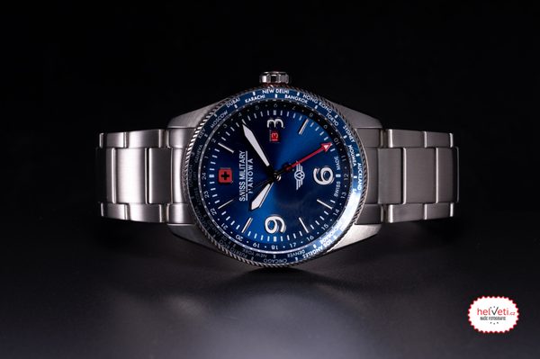 Model Swiss Military Hanowa CITY HAWK SMWGH2100905, jenž je poháněn švýcarským quartzovým strojkem disponuje funkcí druhé časové zóny a ukazatelem data na pozici 3. hodiny.