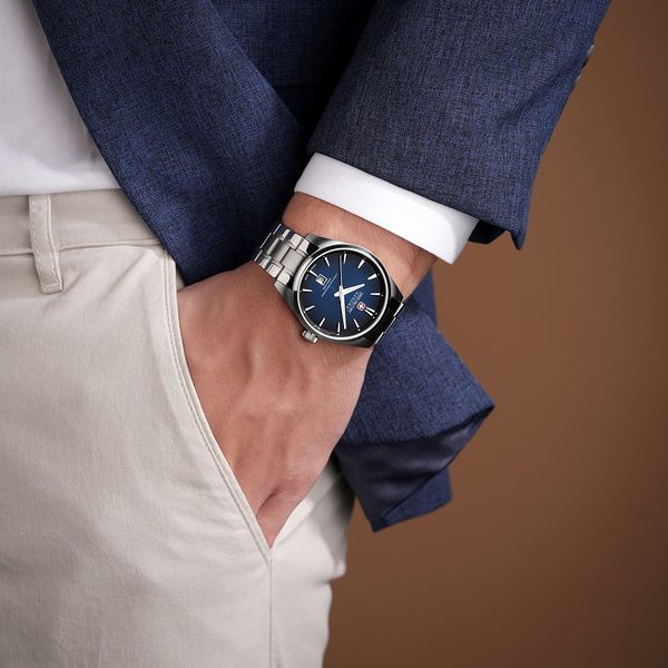 Hodinky mají pouzdro o průměru 42 mm vyrobené z ušlechtilé oceli. V něm najdeme  modrý elegantní číselník s lesklým povrchem, jež mu dodává jemnou hloubku a charakter. Nechybí ani datumové okénko na pozici 6. hodiny. Vše pak chrání safírové sklíčko.