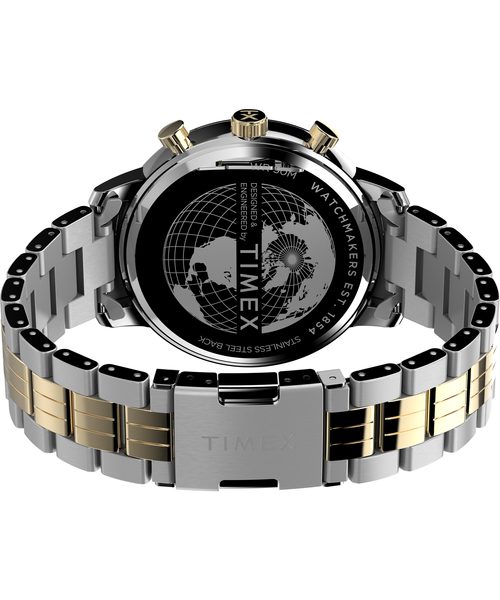 Na mosazném pouzdře o průměru 45 mm je použita leštěná povrchová úprava. Černý číselník slouží jako podklad pro elegantní ručky a indexy ve zlatém provedení. Model disponuje jednoduchým datumovým okénkem, jež se nachází na pozici 3. hodiny a třemi malými subciferníky, které zastávají funkci stopek. Vše pak chrání minerální sklíčko.