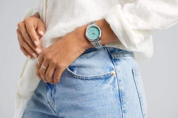 Ocelové pouzdro o průměru 36 mm je opatřeno leštěnou a kartáčovanou povrchovou úpravou. Azurově modrý číselník je podkladem pro štíhlé ručky a indexy v barvě pouzdra. Nepřehlédnutelným prvkem tohoho dámského modelu je unikátní ukazatel dne v týdnu na pozici 12. hodiny. Vše chrání tvrzené minerální sklíčko.