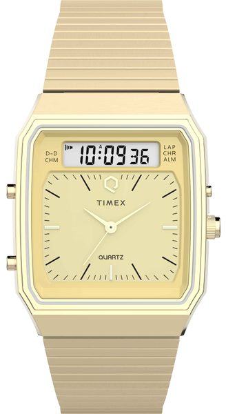 Na ocelovém pouzdře s PVD zlatou povrchovou úpravou o průměru 33 mm je použita kombinace leštěné a kartáčované úpravy. Zlatý číselník je ideálním podkladem pro elegantní štíhlé ručky a indexy. Model kromě analogového zobrazení času disponuje také digitálním displejem v horní části ciferníku. Díky tomu nabízejí hodinky funkci alarmu, stopek,…