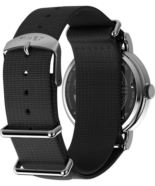 Leštěná povrchová úprava. Zapínání na přezku. Quartz analog baterie. Minerální tvrzené sklo. Luminiscenční ručičky. Indiglo podsvícený displej. Voděodolné do 50 metrů. Materiál pouzdra: mosaz (nízký obsah olova). Materiál pásku: textilie. Velikost pouzdra: 40 mm. Šířka pásku: 20 mm. Délka pásku: 150 – 205 mm.